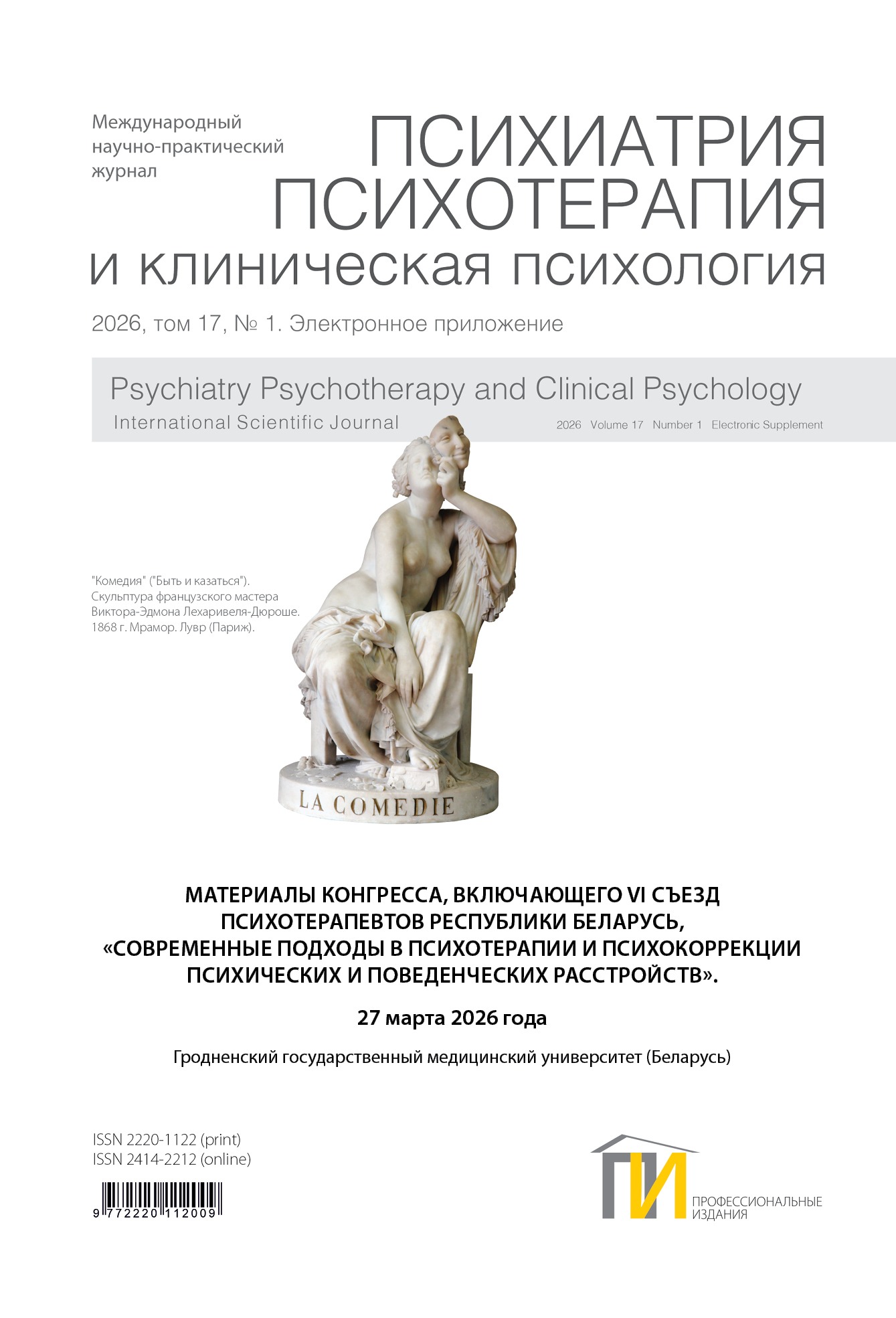«Психиатрия, психотерапия, клиническая психология» – международный рецензируемый научно-практический журнал. Освещает вопросы профилактики, диагностики и лечения психических и поведенческих расстройств, публикует оригинальные статьи, обзоры по различным отраслям психиатрии и смежных наук.